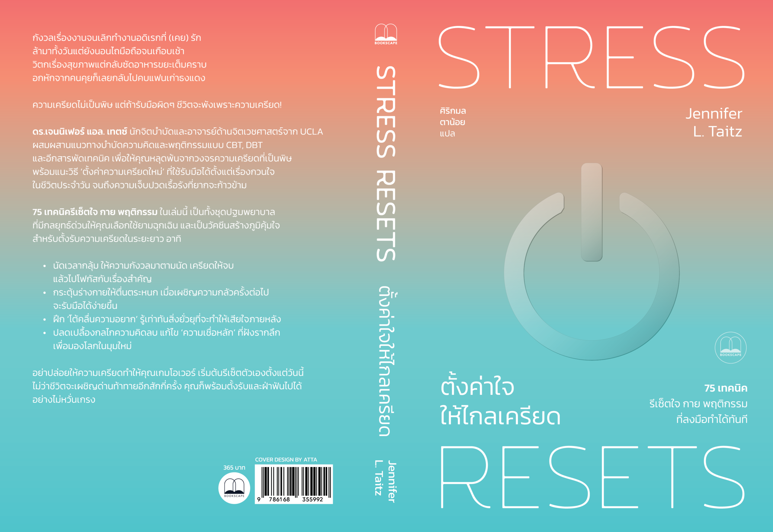 ดร.เจนนิเฟอร์ แอล. เทตซ์ นักจิตบำบัดและอาจารย์ด้านจิตเวชศาสตร์จาก UCLA ผสมผสานแนวทางบำบัดความคิดและพฤติกรรมแบบ CBT, DBT และอีกสารพัดเทคนิค เพื่อให้คุณหลุดพ้นจากวงจรความเครียดที่เป็นพิษ พร้อมแนะวิธี “ตั้งค่าความเครียดใหม่” ที่ใช้รับมือได้ตั้งแต่เรื่องกวนใจในชีวิตประจำวัน จนถึงความเจ็บปวดเรื้อรังที่ยากจะก้าวข้าม