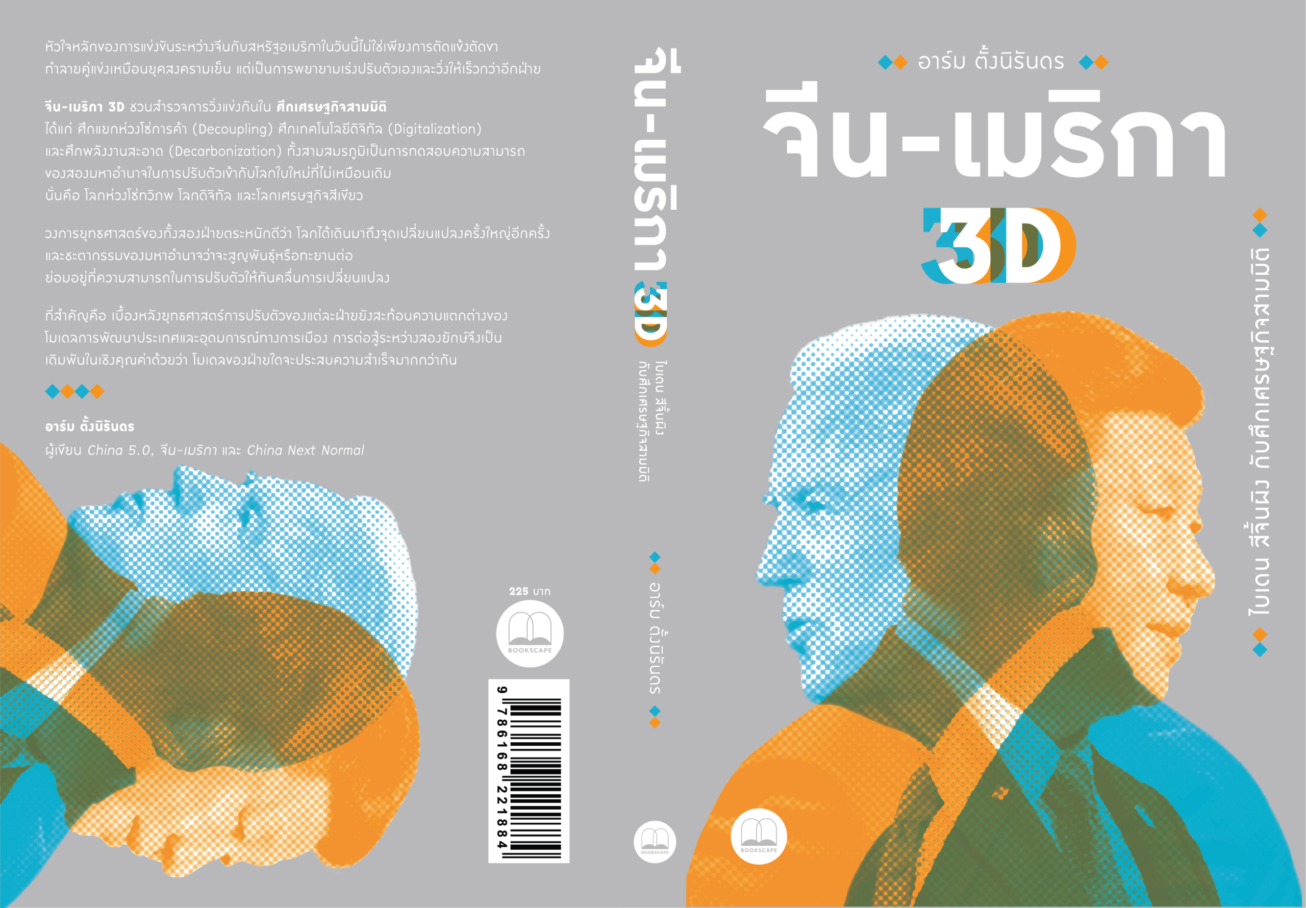 จีน-เมริกา 3D ชวนสำรวจการวิ่งแข่งกันใน ศึกเศรษฐกิจสามมิติ ได้แก่ ศึกแยกห่วงโซ่การค้า (Decoupling) ศึกเทคโนโลยีดิจิทัล (Digitalization) และศึกพลังงานสะอาด (Decarbonization) ทั้งสามสมรภูมิเป็นการทดสอบความสามารถของสองมหาอำนาจในการปรับตัวเข้ากับโลกใบใหม่ที่ไม่เหมือนเดิม นั่นคือ โลกห่วงโซ่ทวิภพ โลกดิจิทัล และโลกเศรษฐกิจสีเขียว