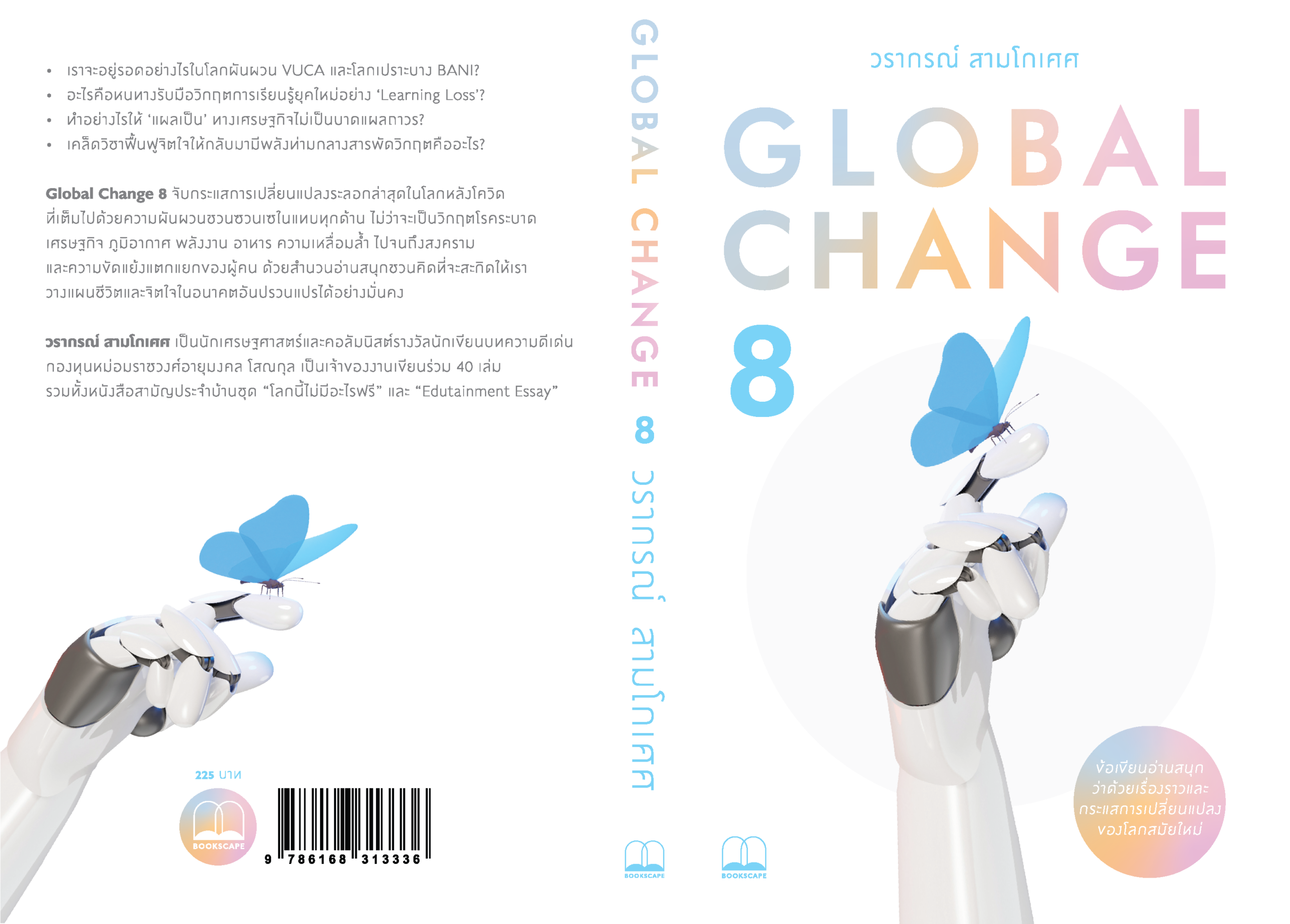 Global Change 8 จับกระแสการเปลี่ยนแปลงระลอกล่าสุดในโลกหลังโควิดที่เต็มไปด้วยความผันผวนชวนซวนเซในแทบทุกด้าน ไม่ว่าจะเป็นวิกฤตโรคระบาด เศรษฐกิจ ภูมิอากาศ พลังงาน อาหาร ความเหลื่อมล้ำ ไปจนถึงสงครามและความขัดแย้งแตกแยกของผู้คน ด้วยสำนวนอ่านสนุกชวนคิดที่จะสะกิดให้เราวางแผนชีวิตและจิตใจในอนาคตอันปรวนแปรได้อย่างมั่นคง
