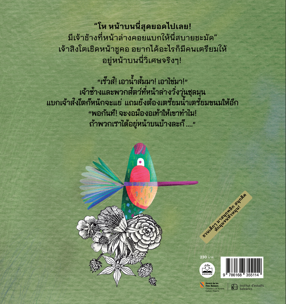 - เล่าเรื่องราวโดยมีลูกเล่นให้เด็กๆ ได้พลิกหน้าหนังสือกลับไปกลับมาระหว่างอ่าน ได้ฝึกกล้ามเนื้อมัดเล็ก ฝึกสมอง และเพลิดเพลินกับเรื่องราวที่หักมุมคาดไม่ถึง