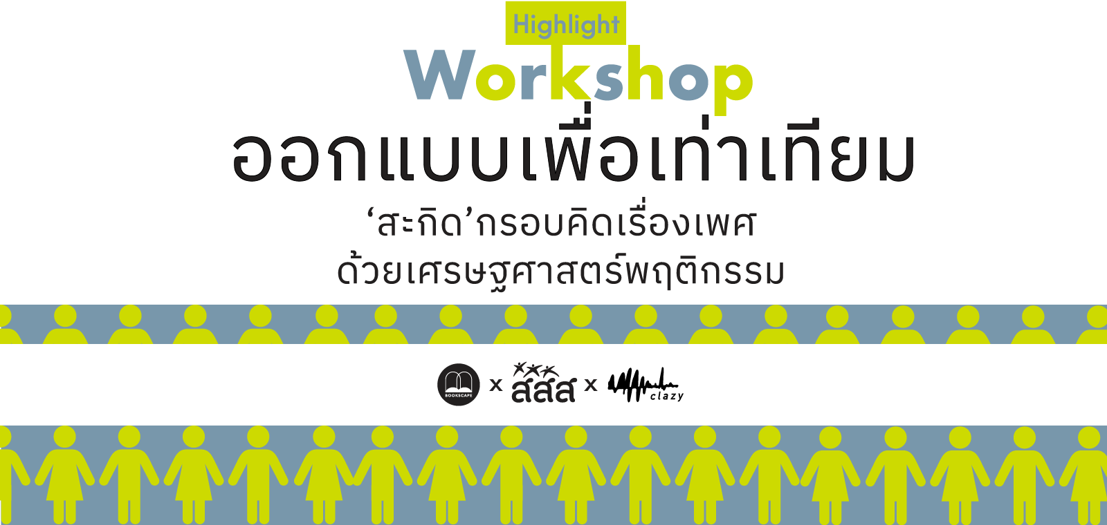 bookscape ร่วมกับ สสส. ชวนผู้สนใจมาเรียนรู้เครื่องมือ #เศรษฐศาสตร์พฤติกรรม และร่วมกันออกแบบ ‘สนามแข่งที่เท่าเทียม’ เพื่อทลายกรอบคิดเรื่อง #ความเหลื่อมล้ำทางเพศ ในกิจกรรม workshop “ออกแบบเพื่อเท่าเทียม: ‘สะกิด’ กรอบคิดเรื่องเพศด้วยเศรษฐศาสตร์พฤติกรรม”