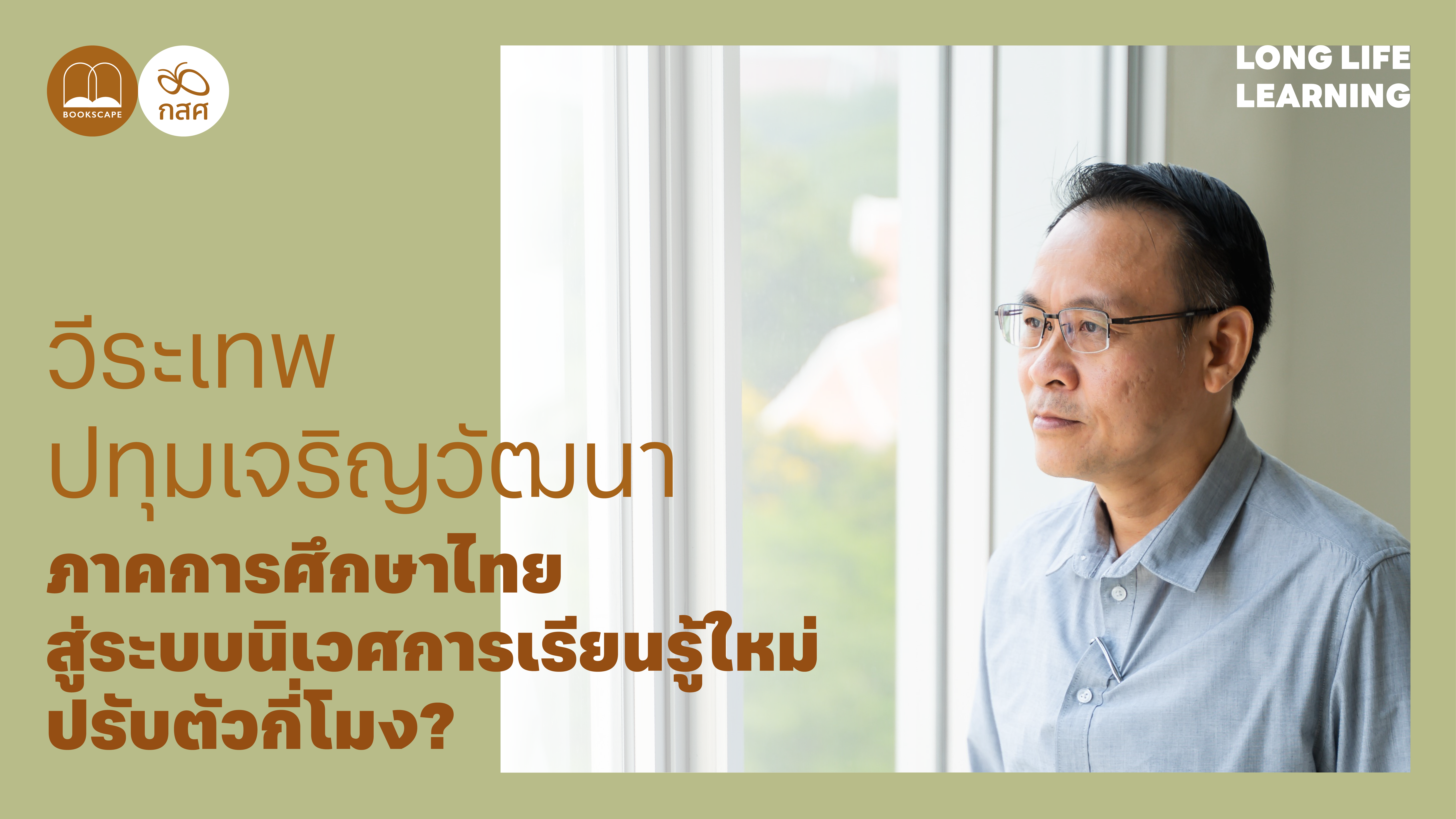 bookscape พูดคุยกับ วีระเทพ ปทุมเจริญวัฒนา หัวหน้าภาควิชาการศึกษาตลอดชีวิตและประธานสาขาวิชาการศึกษานอกระบบโรงเรียน คณะครุศาสตร์ จุฬาลงกรณ์มหาวิทยาลัย ถึงความท้าทาย กรณีศึกษาน่าสนใจ และข้อเสนอสำหรับฝ่ายจัดการเรียนรู้รวมถึงภาครัฐ ต่อยอดจากหนังสือ Long Life Learning: เรียนรู้ใหม่ ไม่รู้จบ ปูทางสู่การสร้างระบบนิเวศการเรียนรู้ใหม่ที่ตอบโจทย์ทั้งการยกระดับ พัฒนาทักษะ และการเรียนรู้ตลอดชีวิตเพื่อความสำเร็จของทุกๆ คน