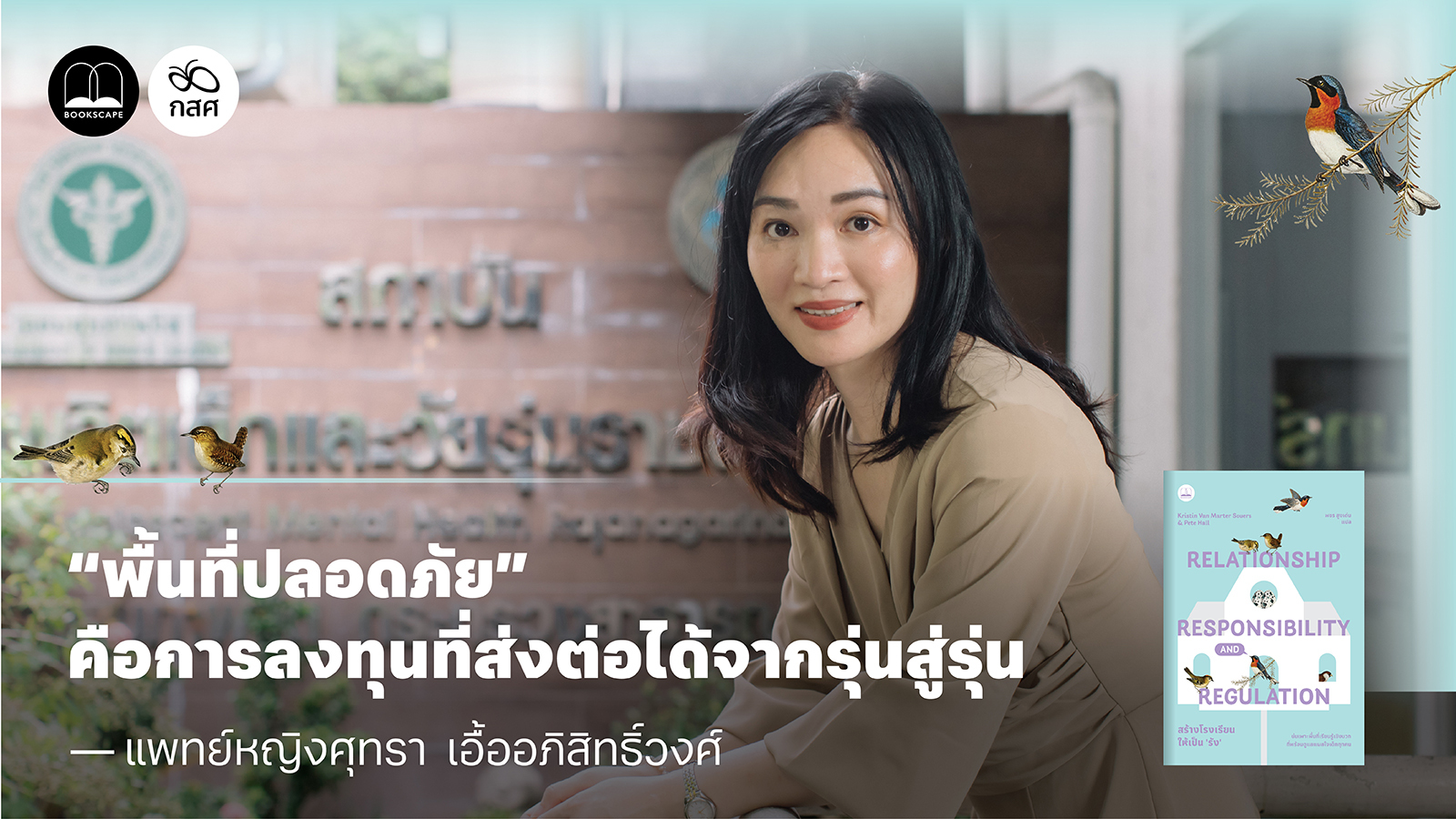 bookscape ชวนฟังประสบการณ์และมุมมองต่อการสร้างโรงเรียนให้เป็นพื้นที่ปลอดภัยของเด็กๆ กับ แพทย์หญิงศุทรา เอื้ออภิสิทธิ์วงศ์ จิตแพทย์เด็กและวัยรุ่น สถาบันสุขภาพจิตเด็กและวัยรุ่นราชนครินทร์ และผู้รับผิดชอบโครงการพัฒนาระบบเสริมสร้างทักษะชีวิตและการดูแลช่วยเหลือนักเรียนอาชีวศึกษา สำหรับนักศึกษาทุนนวัตกรรมสายอาชีพชั้นสูง กสศ. ต่อยอดจากหนังสือ สร้างโรงเรียนให้เป็น ‘รัง’ ที่อัดแน่นด้วยกรณีศึกษา ตัวอย่างกิจกรรม และข้อเสนอแนะที่ปรับใช้ได้จริง เพื่อรักษาแผลใจที่ขัดขวางเส้นทางสู่อนาคต ด้วยการก่อร่างสร้าง “รัง” อันอบอุ่น ให้เด็กๆ ได้เรียนรู้อย่างสบายใจ และเติบโตอย่างเต็มศักยภาพ